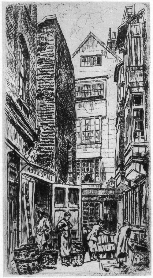 It was, by the way, at a house actually in Cloth Fair, whose sign was appropriately "The Hand and Shears," that the opening of Bartholomew Fair was announced annually with much vociferation and the "snapping of shears''; and it was also about these purlieus that Pip, of "Great Expectations," wandered when awaiting his interview with Jaggers, the lawyer. One likes to think, too, of the youthful Thackeray, a schoolboy at The Charterhouse, close by, haunting this picturesque, but, even then, decaying spot. The gathering of beautiful etchings which has here been made, possesses a double value. They are all works of art, selected by experts for their excellence in a medium which affords opportunities for much variety of treatment; and they are all records of what has disappeared from London; in most instances showing us the various landmarks in the very process of disintegration. Here we have depicted what so many have loitered to observe, the gradual destruction of something with which we have been, in many cases, long familiar. And it has, happily, been within the power of the various well-known artists represented, to extract from this destruction, pictures which are instinct with charm and picturesqueness. If ever ruin could be said to justify itself, it is, as here, when it affords opportunities for such artistic perpetuation. E. BERESFORD CHANCELLOR. |