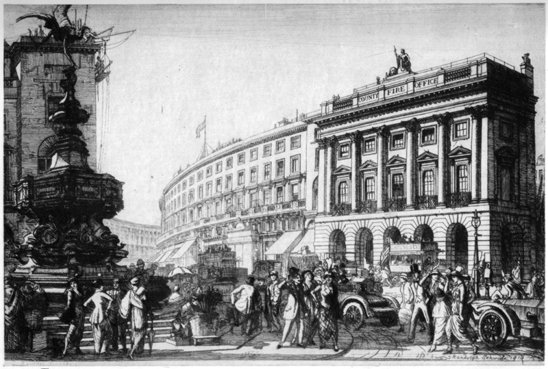 Plate VII | Piccadilly Circus, looking North | Randolph Schwabe. | |